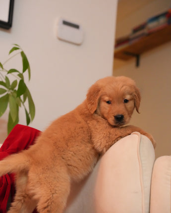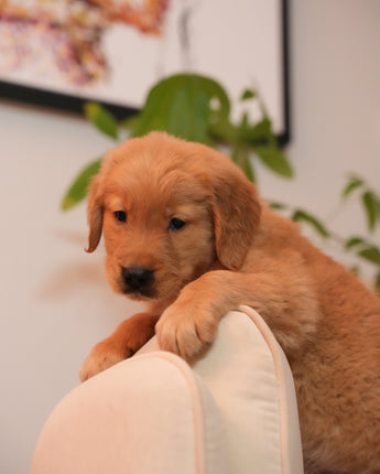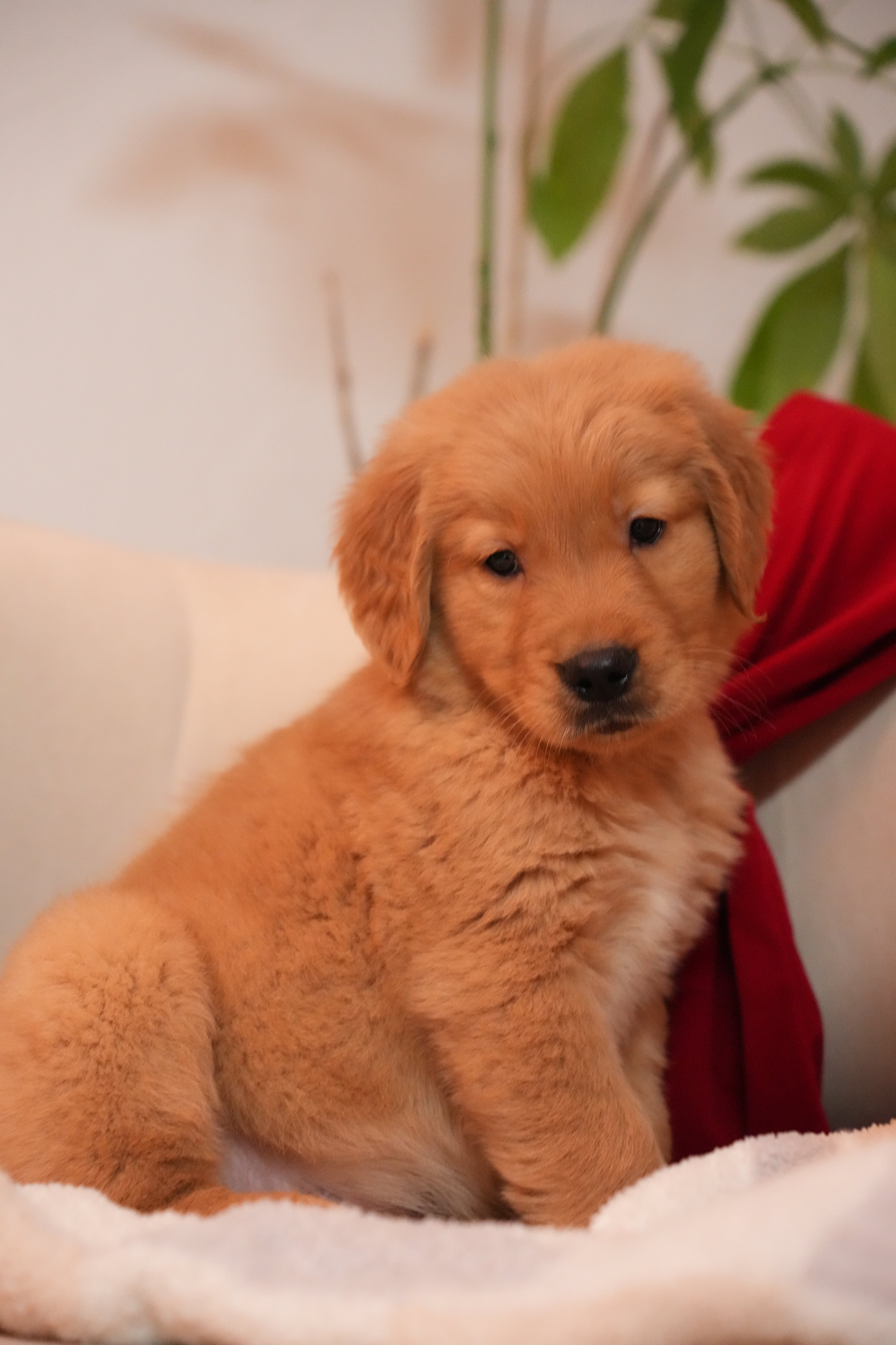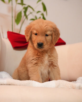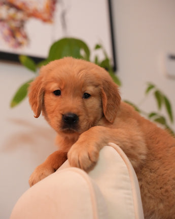 Arthur is one of those puppies who quietly captures your attention the moment you meet him. Steady, observant, and naturally intuitive, he’s a thinker with a calm confidence that makes him a joy to be around. Born on September 21st, 2025, he comes from a remarkable litter known for strong, balanced builds and kind, intelligent dispositions inherited from both champion parents. His soft golden coat gleams in the sunlight, perfectly reflecting his warm, gentle personality.