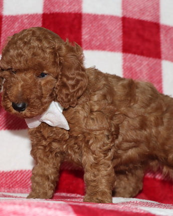 This puppy has been adopted! They’re off to their forever home. 💛 But good news — our newest Golden Retriever litter born March 7, 2025 is now available!